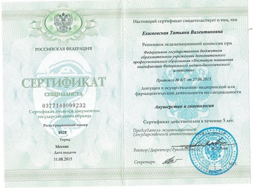 Прием врача акушер-гинеколога (первичный) 1-я, 2-я квалиф. категория